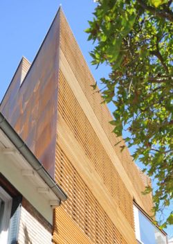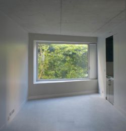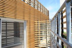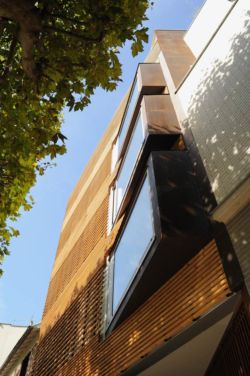 7 appartements ont été créés : 5 studios et 2 logements de 2 pièces chacun. Ils sont tous traversant, en s’ouvrant aussi bien sur la cour que sur la rue. A l’exception de 2 studios, chaque unité possède son espace privatif extérieur: jardin, loggia ou terrasse. Les parties séjour des espaces ouverts sont orientées de façon variable, soit vers la rue soit vers la cour. Les studios orientés principalement vers la rue sont agrémentés d’oriels légèrement tournés vers l’ouest pour attraper la lumière de l’après-midi et offrir une vue dégagée vers le jardin situé au bout de la rue et plus au loin vers les collines de Meudon. Dans ce cas la zone de couchage se situe côté cour. Dans l’appartement adjacent en revanche, la partie côté rue est réservée au coin nuit. Ainsi cette partie de façade donnant au sud est habillée de lattes en bois faisant office de brise-soleil.