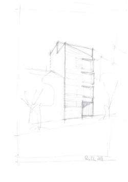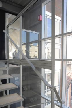 Les espaces séjour et couchage ont été prévus pour pouvoir être séparés par des blocs de rangements en pose libre de type mobilier qui délimitent des espaces plus intimes. Ce parti accentue l’esprit « loft » souhaité pour les volumes se trouve souligné par le traitement laissé apparent des matériaux brut tels que le béton banché, l’enduit ciment de certains murs et plafonds ainsi que l’aspect brut de l’escalier métallique desservant les différents appartements en parties communes.